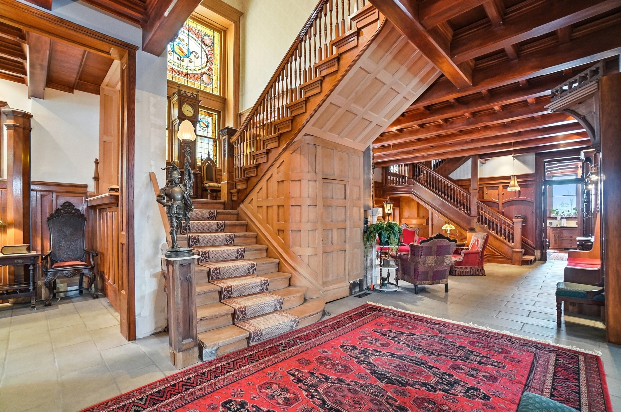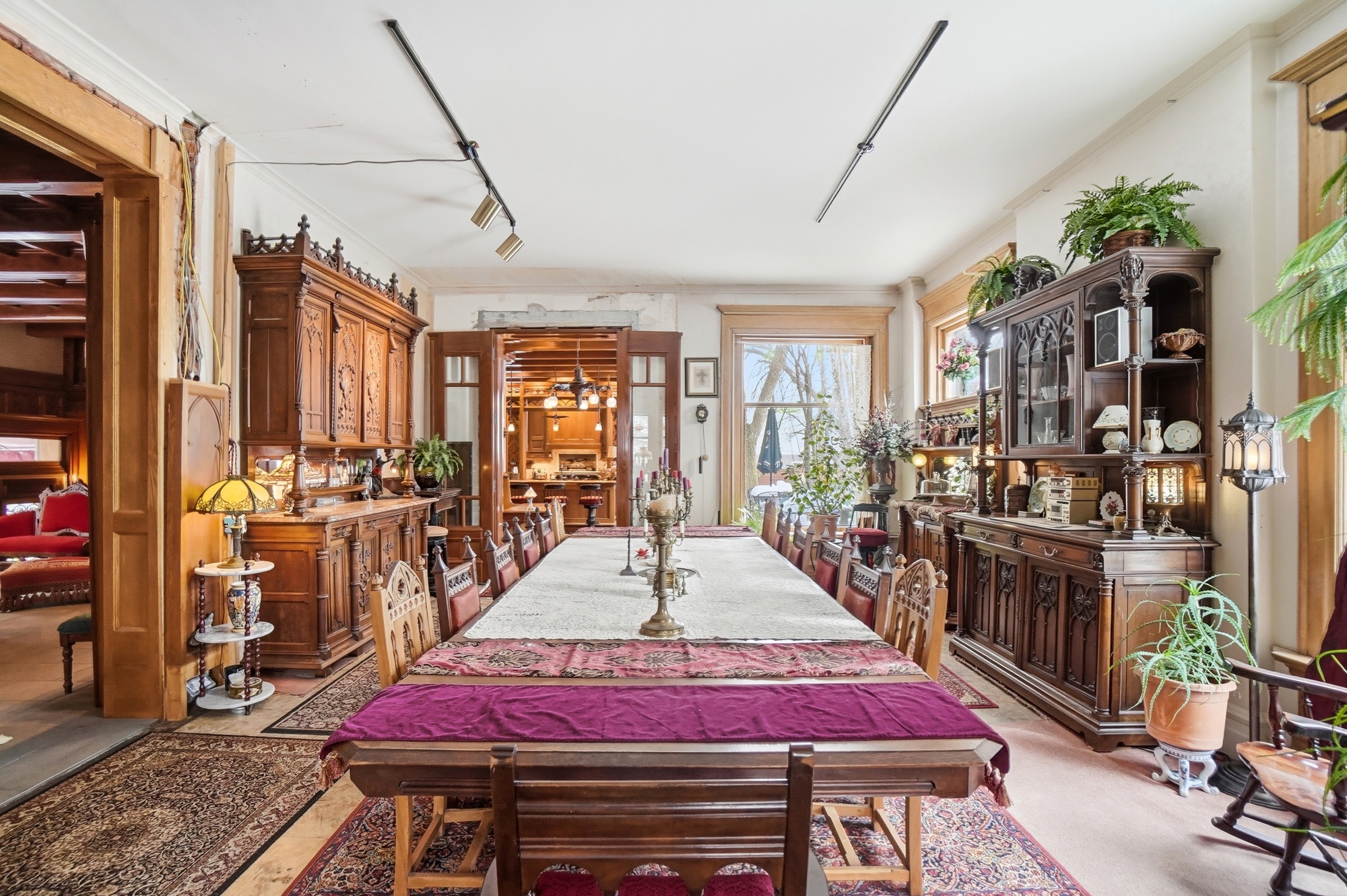 The Historic C.E. Morris Mansion, built in 1895, is a beautifully preserved Romanesque Revival estate set along East Broad Street in Olde Town East district. Rich in architectural character, the home has been carefully restored over time and incorporates select historic elements reclaimed from the former Indianola United Methodist Church on 17th Avenue and Summit. The building displays distinct elements of the Queen Anne style in its irregular massing, corner turret, and tall stepped chimneys. Its textured masonry appearance is enhanced by the use of stone trim, cut stone lintels and sills, and richly carved stone details such as column capitals, brackets, and pilaster bases and capitals. The property was added to the National Register of Historic Places in 1986 and the Columbus Register of Historic Properties in 1988, reflecting its architectural and historical significance. A gated entry leads to a private drive extending from East Broad Street to East Capital Street, offering both privacy and presence. Entry into the property is through electric gates at both the front and back. This mansion is complemented with a large stone front porch, terracotta carvings, poured foundation for a garage or carriage house, several outdoor seating areas, and a tree lined yard with fencing for complete privacy.This distinguished residence features thirteen rooms total with seven bedrooms, two full baths, and three half baths, complemented by grand living spaces and timeless details throughout. Highlights include custom French doors, handmade limestone walls, transom window openers, a walk-up lower-level exterior entry, and generous storage. The formal dining room comfortably accommodates large gatherings and showcases classic furnishings that enhance the home’s historic charm. A rare opportunity to own a piece of Columbus history, the C.E. Morris Mansion offers unmatched character, privacy, and presence in the heart of Columbus. |